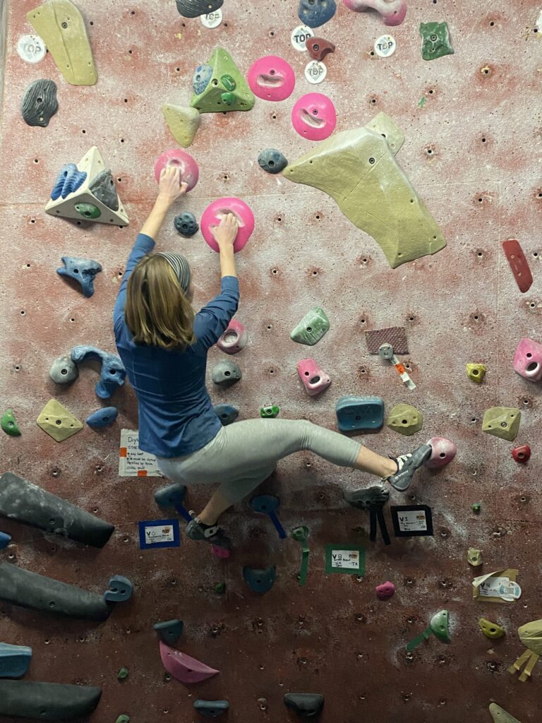 This is a tough one because you have to be comfortable with campusing first (climbing without your feet, like monkeybars). However, campusing is a skill that anyone can learn with practice, and I encourage you to give it a go!