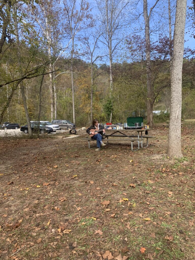Me strumming at Miguel’s on a brisk autumn day while the soup heats up