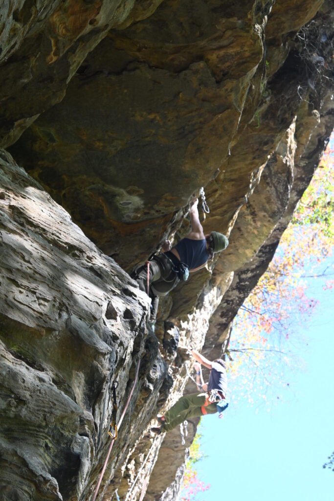 The sort of absolutely ill business your crew can get up to if everyone has a spot at the dinner table (Kirby putting up Screaming Yellow Zonkers at Smith Rock)