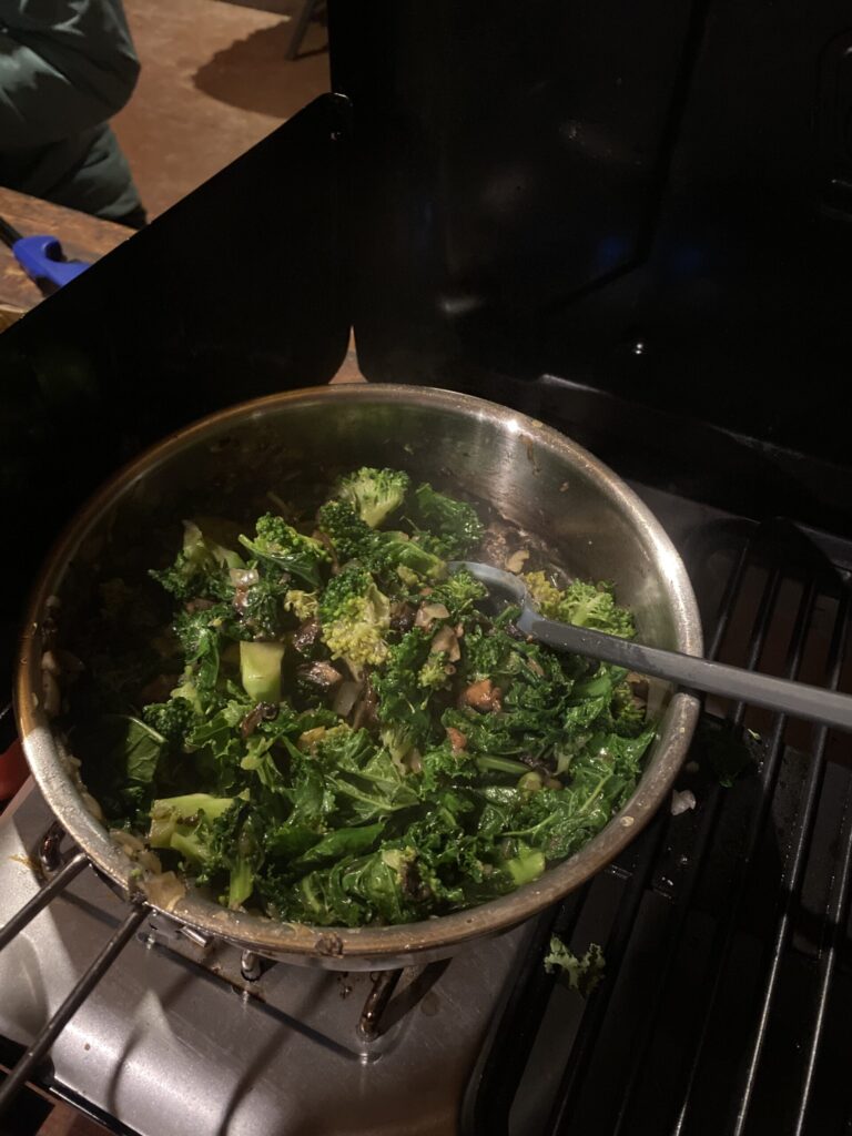 - This is also a good time to chop any extra veggies you’re using and rip up any kale you want to include.
