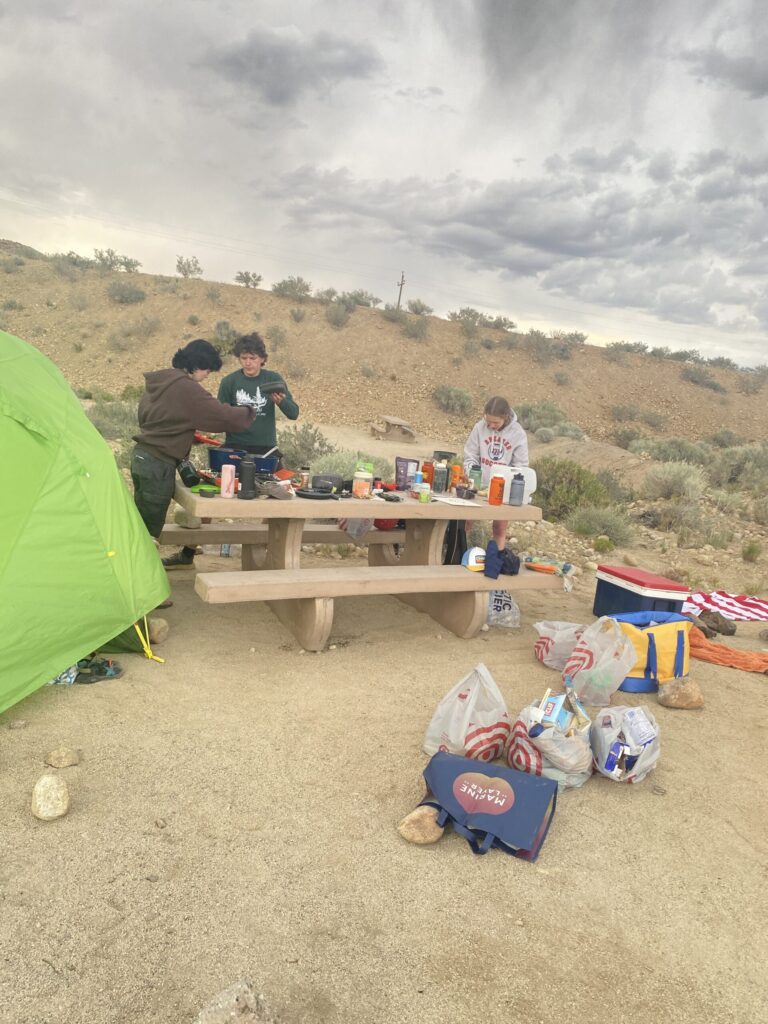 The crew making a big mess and serving up a tasty dinner at the Pleasant Valley Pit Campground