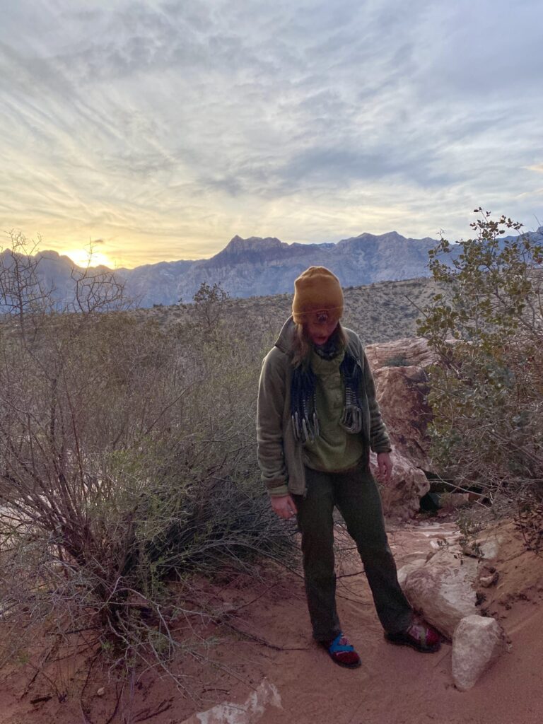 Enjoying a sunset in Red Rock Canyon, wearing my Chacos and some patterned socks