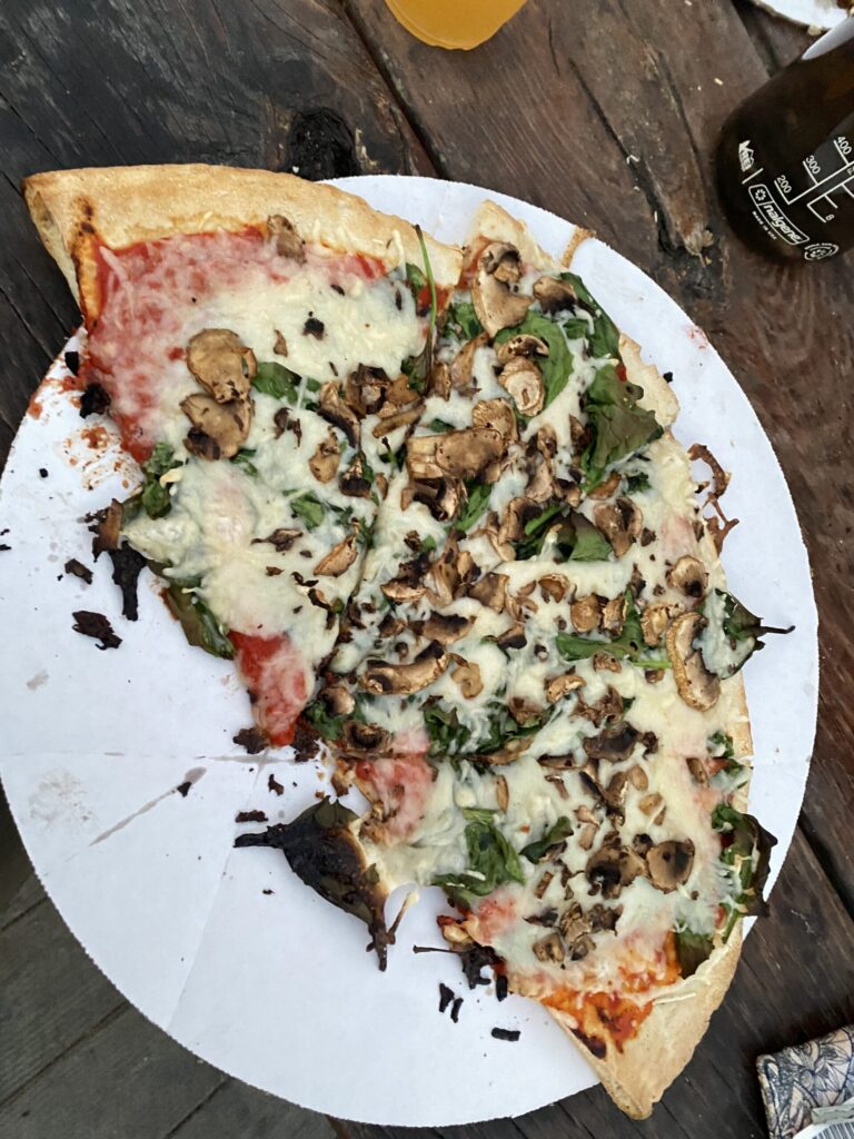 A vegan half-pizza that I ordered from Miguel’s last spring with spinach and mushrooms. Miguel’s has a super accomodating menu, including non-dairy cheese, three different gluten free crusts, and the most diverse toppings list I have ever seen