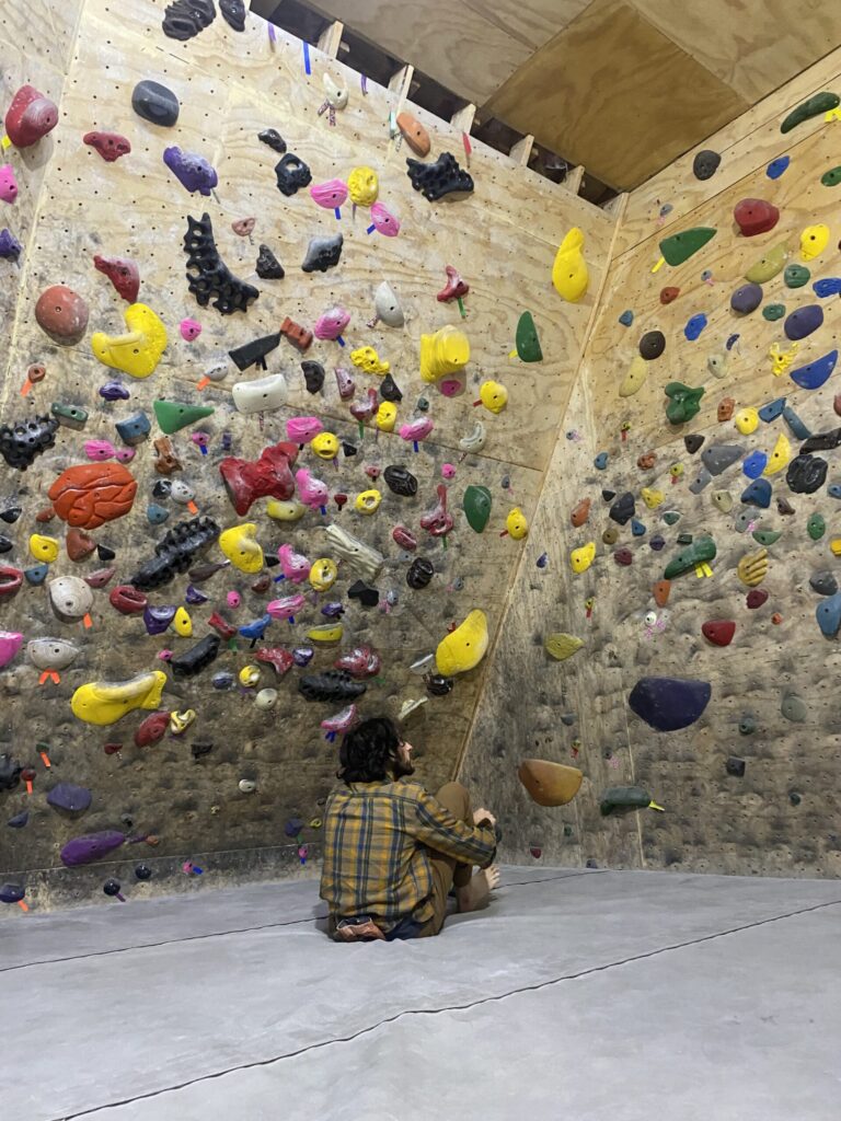 Tomo lookin cool at the Rec Center’s bouldering wall